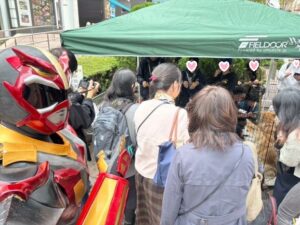 あきた美彩館『発酵まつり』2日目にもジオンと参上‼ 初日の浅草に来てくれた人達もまた来てくれたり、昨日のふるさと会に来ていた人が子どもを連れて来てくれたり、スタートからたくさんのお客さんでにぎわっていました。なまはげもまた登場! 美彩館でいつも一緒になるなまはげとは、すっかり仲良しに☝
